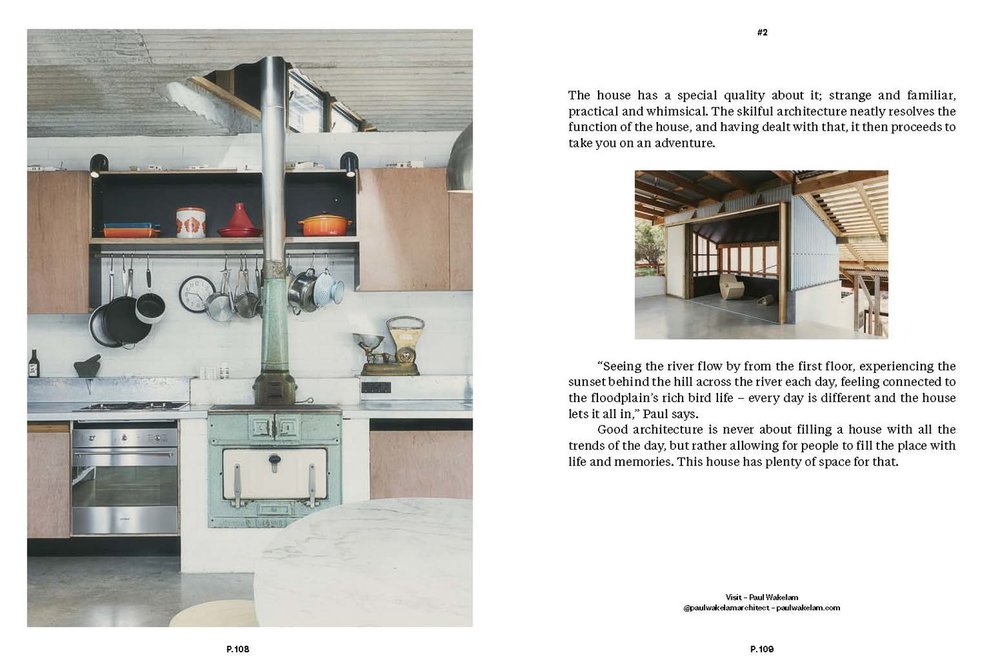 “Seeing the river flow by from the first floor, experiencing the sunset behind the hill across the river each day, feeling connected to the floodplain’s rich bird life – every day is different and the house lets it all in,” Paul says. Good architecture is never about filling a house with all the trends of the day, but rather allowing for people to fill the place with life and memories. This house has plenty of space for that.
