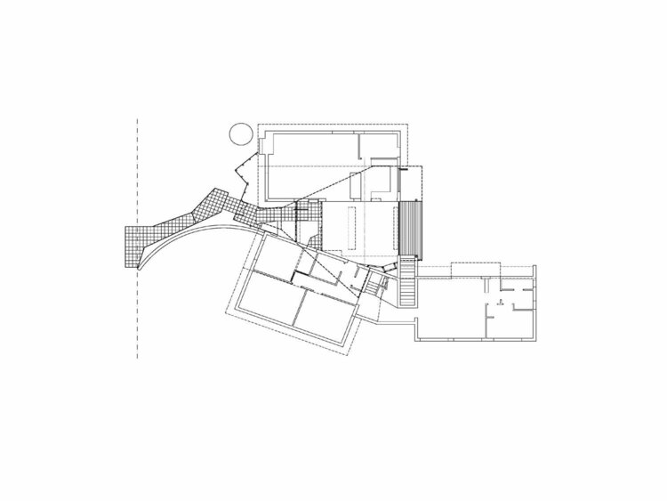 A new roof over an existing enclosed courtyard in the coastal suburb of City Beach. Inspiration was taken from Alvar Aalto’s Maison Carré in the countryside outside Paris. A pavilion/verandah was created to the rear with the leftover skillion roof, which allowed for the play of light from the east and west filtering into the space between.