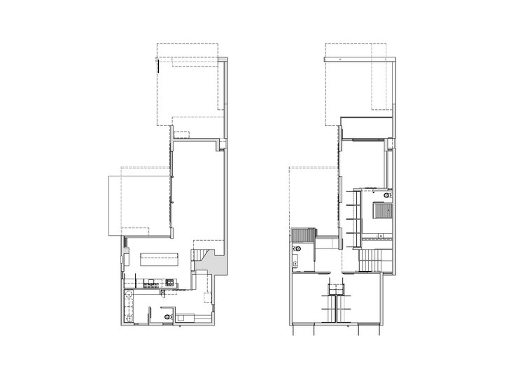 The site is on reclaimed land subdivided from two to four lots, each approximately 200sqm. There is a north-south aspect to the site, with a pool and timber deck occupying the front yard. A canopy roof allows for outside dining and protection from summer sun, but also enables winter sun to flood into the back of the kitchen.