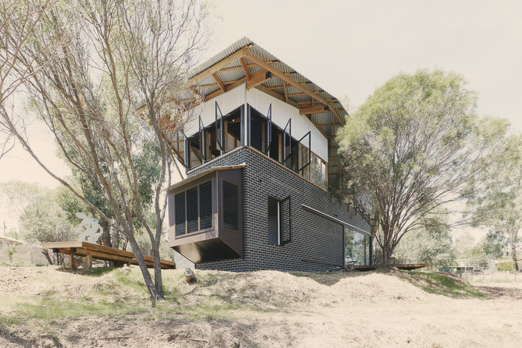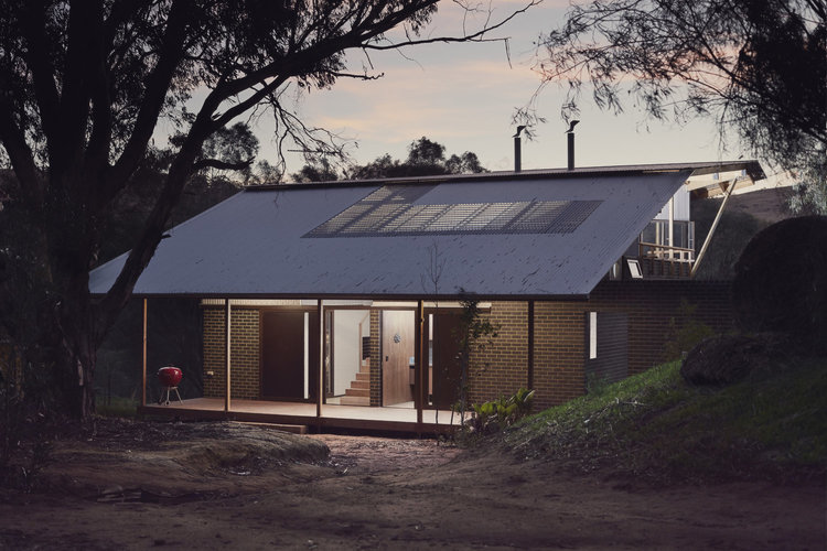 The Toodyay Shack sits on a re-viewed and re-configured 1/2 acre town site. The memory of the house is also re-viewed and re-configured. The climatic regression house plays with thresholds of what is internal and what is external. Sailing a boat and going camping metaphors are completely accurate in the way the house is activated and used depending the weather. The actualization of this manipulation that includes orientating house to climate is a brick cave with a timber fly roof.